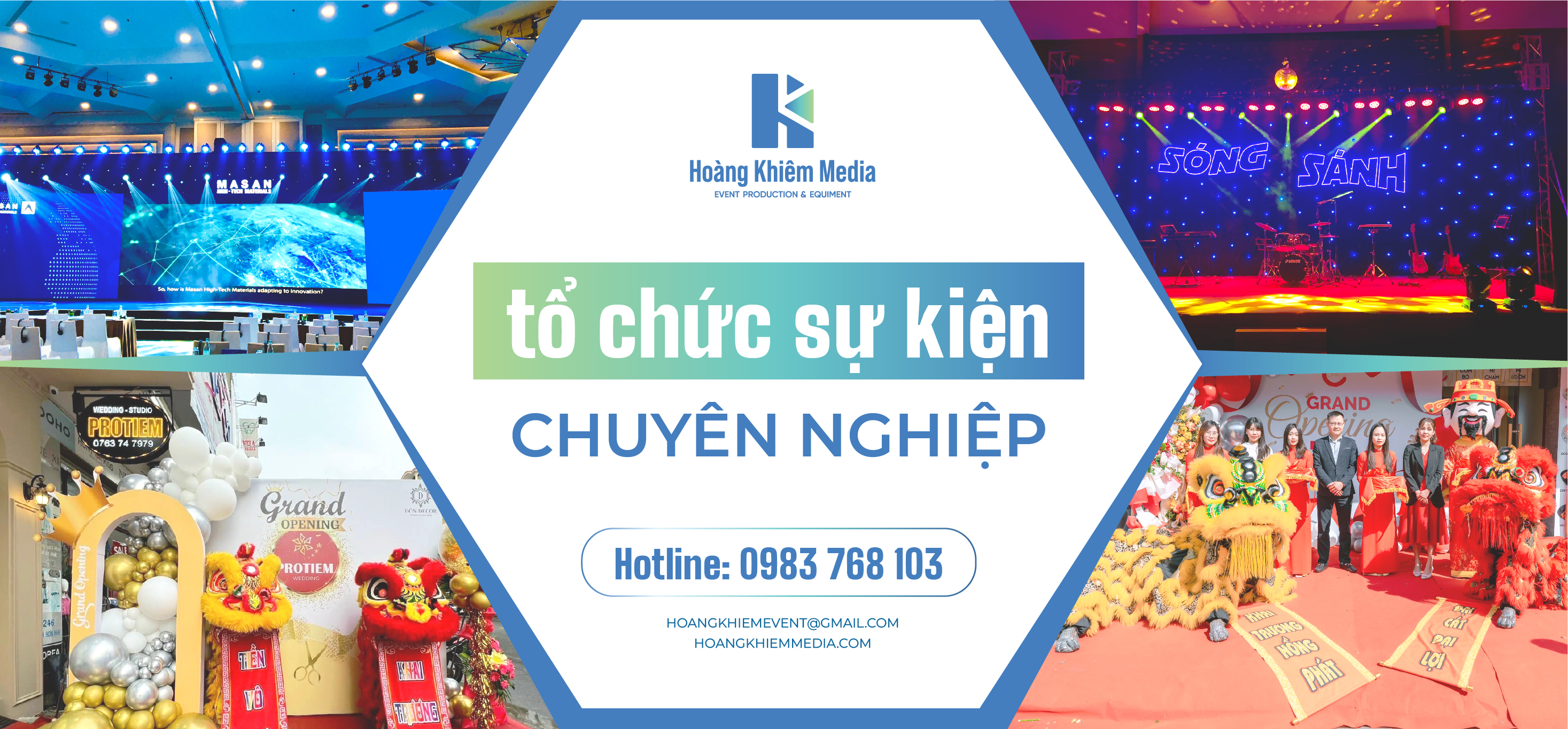 - HOÀNG KHIÊM media với bề dày kinh nghiệm 15 năm, trực tiếp tư vấn tổ chức, điều hành & giám sát sự kiện, đảm bảo chuyên nghiệp, nhanh chóng, chính xác.